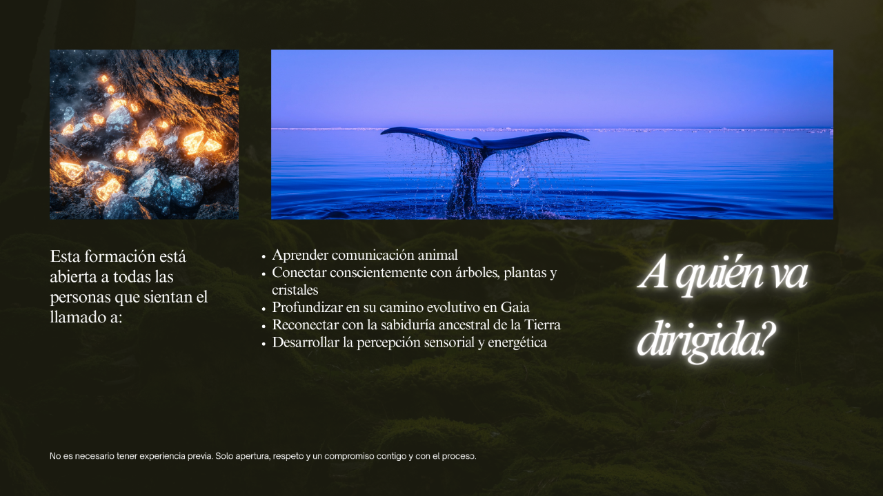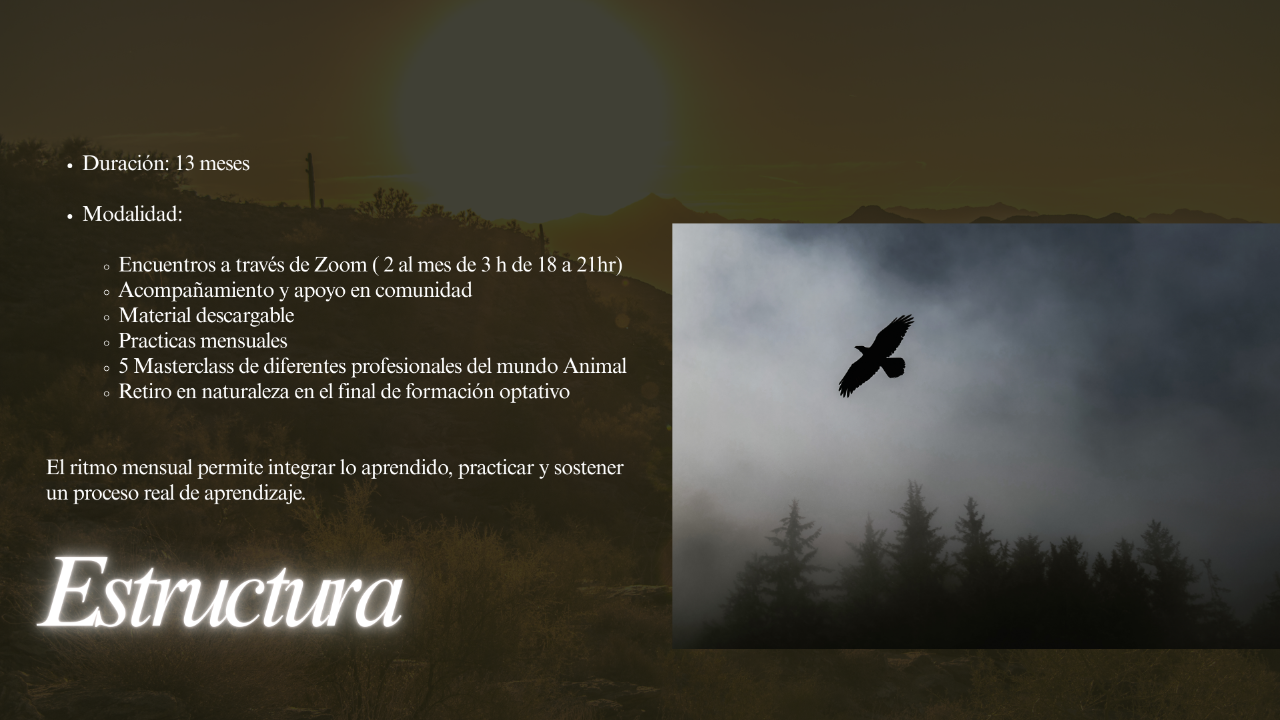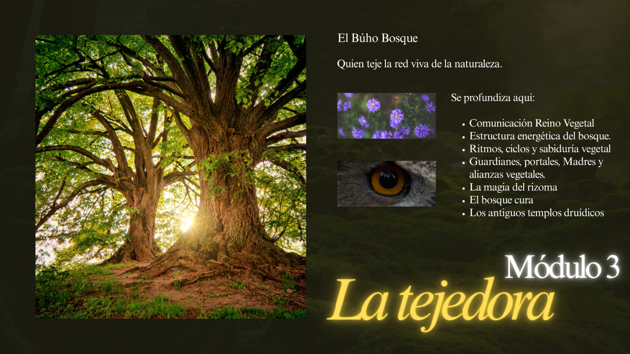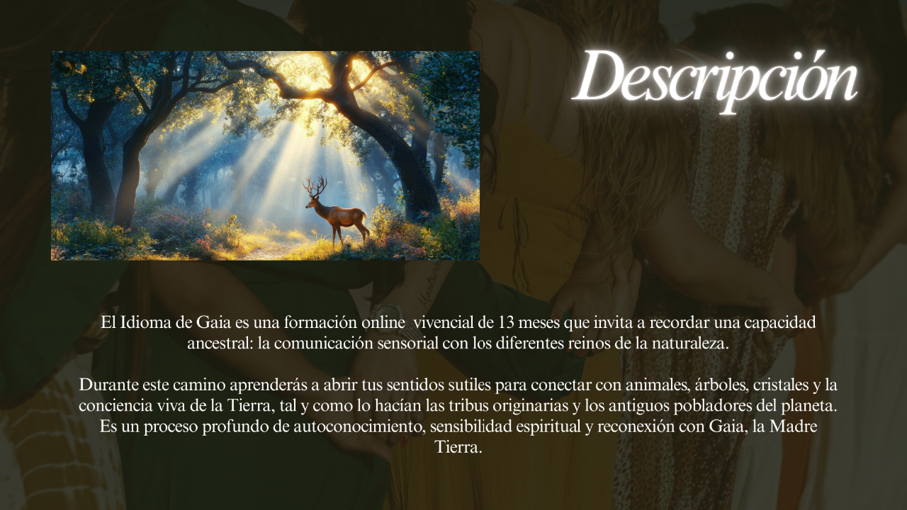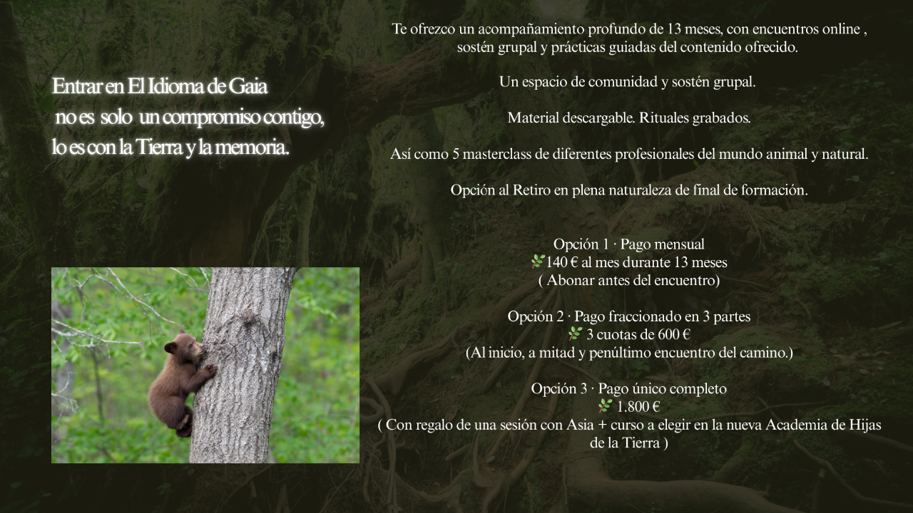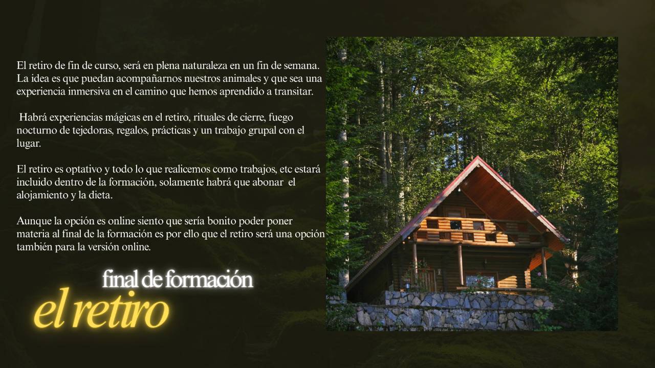 ADEMÁS VOY A OFRECERLO EN FORMATOONLINE. HABRÁ CINCO MASTERCLASS OFRECIDAS POR OTROS PROFESIONALES, UN RETIRO DE FINAL DE CURSO MUY ESPECIAL, PRÁCTICAS MENSUALES Y MUCHA CONEXIÓN CON LO ANCESTRAL.