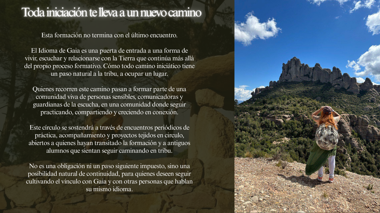 TRAS VARIOS AÑOS SIN OFRECER ESTA FORMACIÓN VUELVO A PONER EN MARCHA TOTALMENTE RENOVADA Y ACTUALIZADA EN FORMATOS Y CONTENIDOS, MAESTRÍA ANIMAL. SU NOMBRE SERÁ "EL LENGUAJE DE GAIA " YA QUE EN ELLA VAMOS A ADENTRARNOS EN LOS LENGUAJES DE LOS MÚLTIPLES SERES CON LOS QUE CONVIVIMOS PARA RECORDAR EL IDIOMA DE GAIA.